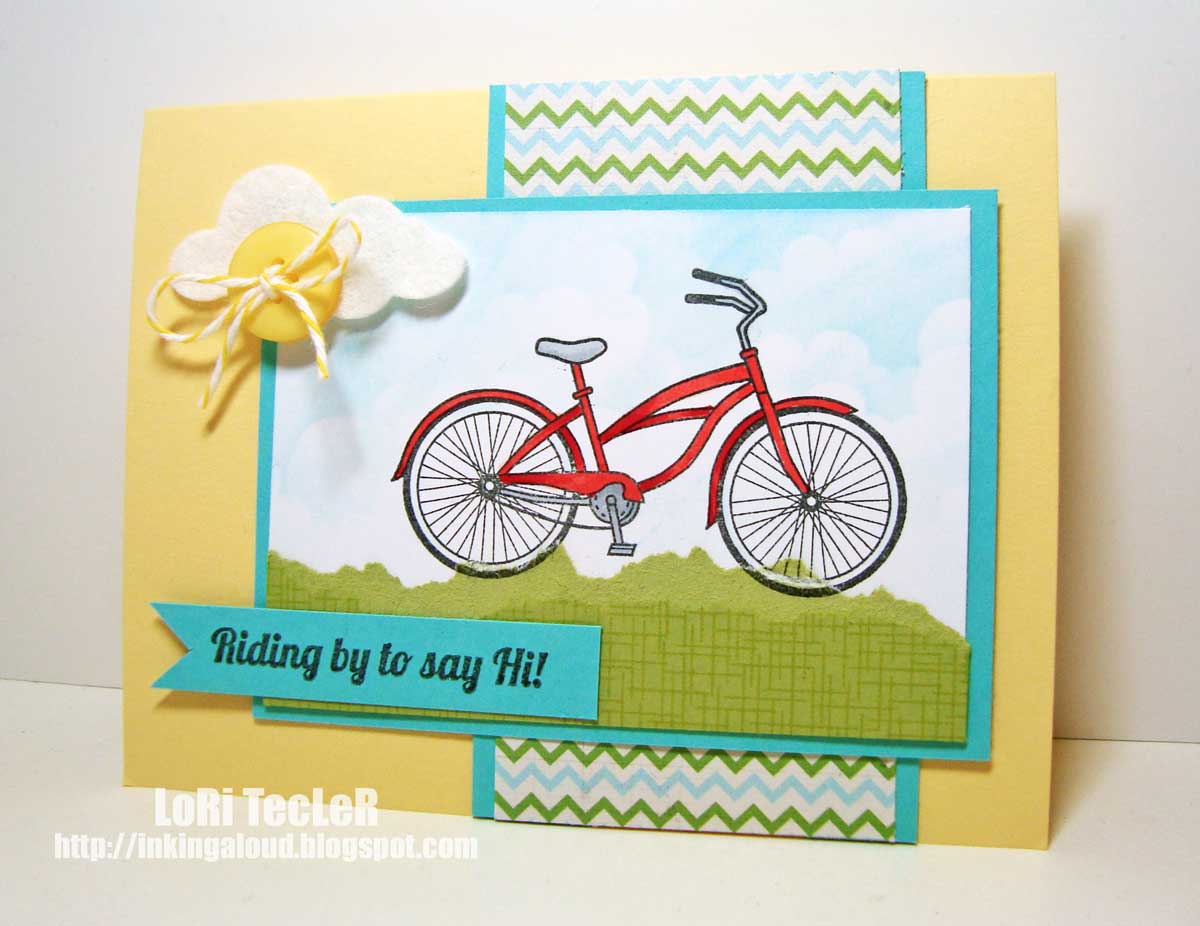 Here’s my card for week two’s sketch. This card is going to a colleague of my dad’s as a get well card, so I picked a cheery red and yellow color combination.